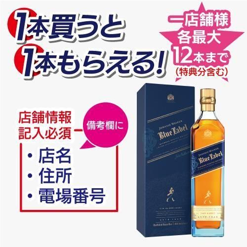 【1本購入毎に1本プレゼント】【MAX数量6本+6本プレゼント】ジョニーウォーカー ブルーラベル 750ml【店名・住所・TEL記入必須(備考欄)】